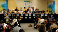 제 57회 칸 국제광고제 라디오 부문의 프레스 컨퍼런스가 시상식에 앞서 진행되고 있다. ⓒ 뉴데일리 “지난해에 비해 음향이나 여러 부문에서 탁월한 능력을 보였지만 올해의 그랑프리는 없습니다.”라디오 부문의 그랑프리는 결국 선정되지 않았다. 2005년 칸 국제광고제의 새