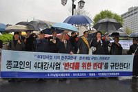 “‘4대강 살리기’를 ‘4대강 죽이기’라며 반대를 위한 반대를 하고 있다”시민사회단체들은 28일 오후 서울 명동 성당 앞에서 “일부 종교인들이 전문가도 아니면서 치산치수(治山治水)와 자연파괴도 구분 못하고 무조건 반대만 하면서 국민을 현혹시키고 있다”며 “4대강 살리기