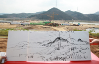 중장비가 쉴 새 없이 움직이는 4대강살리기사업 공사현장에 화구가 등장했다. 30여명의 화가들이 붓을 들고 공사현장과 주변 경관을 담으려 바삐 손을 움직인다.