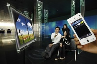 삼성전자가 지난해 출시한 프로젝터폰인 '햅틱빔' 보다 한층 업그레이드된 프로젝터 화질과 기능을 탑재한 모바일 프로젝터폰 '아몰레드빔(SPH-W9600)'을 14일 발표했다. '햅틱빔'은 지난 해 2월 국내에 출시되어 프레젠테이션이 많은 직장인들과 영화를 좋아하는 고객