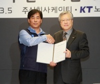 KT와 KT 노동조합이 노사문화의 새로운 이정표를 세운다.KT와 KT노동조합은 5일 서초동 KT 올레캠퍼스에서 이석채 회장과 김구현KT노조위원장이 참석한 가운데 '올레 KT 창조적 신노사문화 공동선언'을 채택하고 지속적인 기업가치 창출과 사회적 책임 실천 등 상생의 신