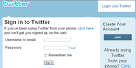 트위터 로긴 창 ⓒ 뉴데일리 최근 소셜네트워크 프로그램으로 큰 인기를 끌고 있는 트위터(Twitter)에서 피싱과 스팸이 발생해 사용자들의 주의가 요구되고 있다.안철수연구소(대표 김홍선)는 26일 마이크로 블로그 서비스인 트위터(Twitter) 상에서 피싱과 스팸이 발