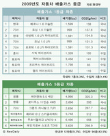 새해 업무보고를 통해 온실가스(CO2) 배출이 적은 차량에 보조금을 지급하는 제도를 도입하겠다고 밝힌 환경부가 이를 실천하기 위해 현재 판매 중인 국내차와 수입차 347종에 대한 온실가스 배출가스 등급을 6일 발표했다.