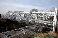 서울 서초구 서울성모병원에서 지하철 2호선 방배역까지 논스톱으로 이어주는 3.25km의 녹지산책로 '서초올레길'이 완성됐다.(누에다리 측면 이미지)서초구는 19일 왕복 8차선 반포로로 인해 단절된 서초 경찰서 뒤 몽마르뜨 공원과 맞은편서울성모병원 뒤 서리골 공원을 이어