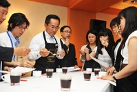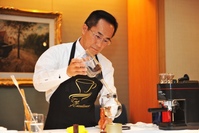 COE국제심사 위원으로 활동중인 칸노 마사히로 (Kanno Masahiro) 도토루 상석집행이사가 23일 서울우유-도토루 신제품 론칭행사에 참석, 기압차를 이용해 유리기구와 알코올 램프로 만들어내는 '사이픈 커피'제조를 직접 시연하며 최고급 아라비카 원두를 추출해 즉석