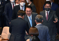 시정연설 후, 여야 의원들 일일이 찾아가 악수… 윤석열 "협치" 몸으로 말했다