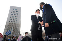 윤석열 국민의힘 대통령후보가 '친문' 성향 단체 '깨어있는시민연대당'이 주최하는 '윤석열 지지 선언' 집회에 깜짝 등장해 감사의 뜻을 전했다.윤 후보는 1일 오후 서울 서초구 중앙지검 앞에서 열린 깨시연당의 '보수와 진보 진영통합 윤석열 지지 선언' 집회에 참석했다.윤