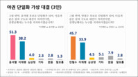 윤석열 국민의힘 대선후보가 야권 단일 후보로 나설 경우 이재명 더불어민주당 대선후보를 13.1%p차로 앞선다는 여론조사 결과가 6일 나왔다. 안철수 국민의당 대선후보가 야권 단일 후보로 이재명 후보와 대결한 경우에는 윤 후보가 나선 경우보다 1.3%p 적은 11.8%p