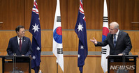 호주를 국빈방문 중인 문재인 대통령과 스콧 모리슨 호주 총리가 '종전선언'을 두고 미묘한 온도 차를 보였다.문 대통령은 '대화'를 강조한 반면 모리슨 총리는 '비타협'을 강하게 주장했다.文 "조속한 대화 재개되도록 노력할 것"문 대통령은 13일 한-호주 정상회담 직후