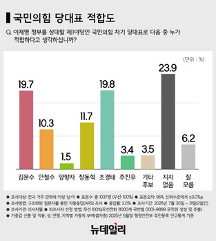 국힘 당대표 적합도 조경태 19.8%·김문수 19.7% … 趙 진보·金 보수 성향서 지지세