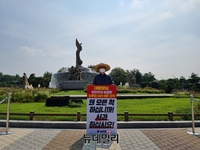 유상범 국민의힘 의원은 30일 오전 청와대 분수대광장 앞에서 '드루킹 댓글조작' 사건과 관련 문재인 대통령의 사과를 촉구하는 1인 시위를 벌였다. 정진석 국민의힘 의원이 29일 릴레이 시위의 시작을 알린 데 이어 유 의원이 두 번째 주자로 나섰다.정 의원이 참석한 첫