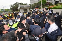 국민의힘이 23일 김명수 대법원장의 사퇴를 촉구하는 시위 과정에서 경찰과 충돌을 빚었다. 주호영 국민의힘 대표권한대행은 김 대법원장을 두고 "사자 몸 속 구더기"라고 비유하며 강하게 비판했다.주 권한대행 등 국민의힘 의원 50여명은 이날 오전 서울 서초구 대법원 앞에서