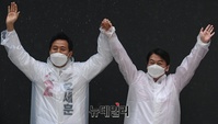 [D-9] "文정부 심판하려면 기호 2번"… 안철수, 황사에도 오세훈 총력지원