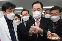 주호영 국민의힘 원내대표는 24일 당 코로나특별위원회 위원들과 함께 코로나 백신 접종 준비상황 현장점검에 나섰다.오는 26일 첫 백신 접종을 앞두고 국민의 기대와 우려가 뒤섞인 와중에 문재인 대통령 대신 "내가 맞겠다"며 '백신 호위무사'를 자처한 여권과 달리 직접 현