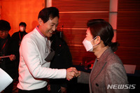 4.7 부산시장 보궐선거에 출마하는 박민식·이언주 국민의힘 예비후보가 22일 오전 단일화에 합의했다. 이들은 이날 오전 부산시의회 브리핑룸에서 공동기자회견을 갖고 단일화 소식을 알렸다. 앞서 21일 서울에서 만남을 가졌던 두 후보는 당시 단일화 시기와 방식에
