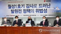 국민의힘이 6일 월성 원전 1호기 경세성 평가 조작 의혹과 관련해 "문재인 정부의 탈원전은 대한민국을 자해하는 정책"이라며 탈원전정책 폐기를 촉구했다.국민의힘은 또 정부·여당이 산업통상자원부·한국수원자력·한국가스공사 등을 압수수색한 검찰을 향해 "검찰 하는 짓이 정치군