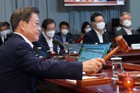 文 "3차 추경 지연" 야당 압박… '상임위 독식' 민주당엔 침묵