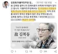 지난해 1월 일본군 위안부 피해자인 김복동 할머니가 별세했을 때 더불어민주당이 정의기억연대 이사장을 지낸 윤미향 당선인의 개인계좌 모금을 당 차원에서 독려했다는 주장이 19일 제기됐다. 김 할머니 사망 당시 윤 당선인이 개인계좌로 후원금을 모집하자 민주당이 나서서 이를