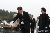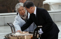 "대통령님, 대통령님, 누구 소행인가 말씀 좀 해주세요."천안함 용사 유족 윤청자(77) 여사가 27일 국립대전현충원에서 열린 제5회 '서해수호의 날'에 참석한 문재인 대통령에게 호소했다. 윤청자 여사는 2010년 3월 천안함 폭침사건으로 막내아들 고(故) 민평기 상사