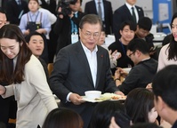 문재인 대통령이 21일 정부세종청사에서 공무원들과 점심 만남을 가졌다. 이 자리에서 문 대통령은 공무원들의 현실적 고충을 듣는 대신, 문재인 정부 들어 취업난이 해소됐다는 점을 자랑해 진정성 있는 국민소통 행보가 맞느냐는 지적이 제기됐다.문 대통령은 이날 세종청사 구내