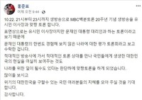 홍준표 전 자유한국당 대표가 유시민 노무현재단 이사장과 ‘맞짱 토론’을 벌인다. 홍 전 대표는 “문재인 대통령 대리인과 하는 토론이라고 본다”고 했다.홍 전 대표는 19일 자신의 페이스북을 통해 “22일 21시부터 23시까지 생방송으로 MBC ‘100분 토론’ 20주년