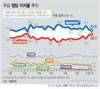 한국 32.2% > 민주 30.9%…'중도층 지지율' 처음으로 역전