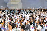 황교안 자유한국당 대표가 14일 제74주년 광복절 맞이 대국민 담화에서 문재인 정부 정책의 대전환을 촉구하는 한편 "믿음을 주지 못할 경우 한국당은 국민의 염원을 담아 특단의 대책을 세울 것"이라고 경고했다. 황 대표는 이날 국회 본청 중앙홀에서 발표한 대국민