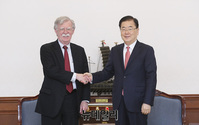 정의용 청와대 국가안보실장은 24일 존 볼턴 미국 백악관 국가안보회의(NSC) 보좌관을 만나 한반도 문제와 한일 관계 등 주요 현안에 대한 양국 간 협력 강화 방안을 협의했다고 청와대가 밝혔다. 청와대에 따르면, 이날 두 한미 안보수장은 오전 9시부터 10시1