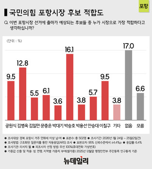 포항시민 61.5% "국힘 후보 지지" … 박승호 16.1%, 김병욱 12.8%, 공원식·이칠구 9.5%