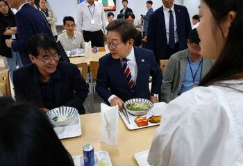 이재명 대통령이 대통령실 내 구내식당에서 출입기자단과 점심 식사를 같이 했다.대통령실은 11일 "이 대통령은 점심시간때 기자 식당에서 기자단과 식사를 했다"고 밝혔다.이 대통령은 전날 대통령실 직원식당에서 참모진과 식사한 뒤 출입기자단과 '번개 티타임'을 하기도 했다.