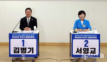 김병기·서영교 더불어민주당 의원이 10일 원내대표 선거를 위한 합동 후보자 토론회에서 내란 종식을 최우선 과제로 내세웠다. 이들은 야당과의 협력 의지를 드러내면서 당원과 자당 의원들에게 지지를 호소했다. 서 의원은 이날 국회에서 열린 토론회에서 "이