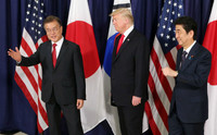 G20정상회의 첫날 한미일 3국 정상이 북한 문제가 담긴 공동성명을 발표하며 기선제압에 나섰다.북핵 문제를 반드시 해결하겠다는 단호한 의지를 보여줌과 동시에, 보다 많은 역할을 요구받고 있는 중국에 대한 신중한 접근과 '달래기'의 의미가 포함돼 있다는 분석이다.문재인