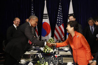 박근혜 대통령과 버락 오바마(Barack Obama) 미국 대통령은 9일 북한의 5차 핵실험 직후 전화 통화를 갖고, 모든 가용 수단을 사용해 북한이 핵(核)을 포기하도록 강력 압박키로 했다.또한 북한의 고립을 가속화하기 위해 국제사회와의 협력을 한층 강화해 나가기로