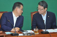 새누리당 이정현 대표가 10일 오전 김재원 청와대 정무수석을 만나 "박 대통령 언제든지 소통하겠지만 많은 사안에 대해서 김 수석을 귀찮게 하겠다"고 말했다. 박근혜 대통령의 최측근이었던 이정현 의원이 신임 당 대표가 되면서 당청관계에 순풍이 불지 주목된다.8.9 전당대