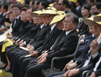 5·18 민주화운동 기간 내내 논란이 됐던 '임을 위한 행진곡'이 23일 울려 퍼졌다. 고(故) 노무현 전 대통령 7주기 추도식이 열린 경남 김해 봉하마을에서다. 더불어민주당과 국민의당을 비롯한 야권 참석자들은 이날 추도식에 총집결했다. 더민주에서는 김종인 대표와 우상