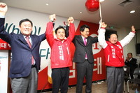 '보수의 아이콘'으로 불리는 새누리당 김진태(춘천) 의원은 3일 선거사무소 개소식 겸 비전선포식을 갖고 재선을 향한 본격적인 출정에 나섰다. 이날 선거사무소 개소식에는 친박 실세 최경환 전 경제부총리가 참석했다. 특히 김 의원은 이날 행사에 앞서 박근혜 대통령이 주최한