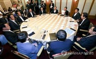 김무성 새누리당 대표, 황교안 국무총리, 이병기 청와대 비서실장 등 당정청 지도부가 오랜만에 머리를 맞댔다.당정청은 22일 오후 삼청동 국무총리 공관에 모여 하반기 국정과제에 대해 논의했다.이날 당정청 회동은 최경환 경제부총리, 원유철 원내대표, 안종범 청와대 경제수석
