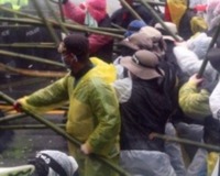 김무성, 피케팅 시위대에 "행사방해 예의 아냐"