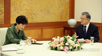 당권을 잡자마자 '박근혜 정부와의 전면전'을 선포했던 새정치민주연합 문재인 대표가 17일 오후 청와대에서 박근혜 대통령을 만났다.박근혜 대통령은 이 자리에서 중동 4개국 순방 성과를 설명한 뒤, 문재인 대표에게 경제도약을 위한 국회 차원의 협조를 당부했다. 반면, 문재