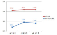 설 연휴를 지나면서 새누리당과 새정치민주연합의 정당 지지도가 큰 변화 없이 횡보(橫步)하는 모습을 보였다. 새누리당의 새로운 원내지도부와 새정치연합의 새로운 당 지도부 출범에 따른 컨벤션 효과가 마감되면서 여론의 출렁거림이 진정되는 조짐으로 해석된다.여론조사 전문기관