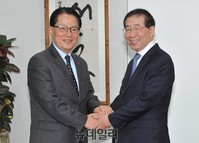 당대표 출마한 박지원, 서울시청 찾아가 朴朴 회동