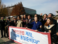 金文洙 "국회, 북한인권법 年內에 통과시켜야”"야당은 북한인권법을 통과시키지 않고서 민주주의를 말하지 말라"김필재 김문수(金文洙) 새누리당 보수특별혁신위원장이 25일 같은 당(黨)의 하태경 의원, 그리고 탈북자들과 함께 국회의 ‘북한인권법’ 연내(年內) 처리