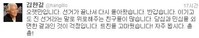 김한길 후보는 민주통합당 당 대표 경선에서 0.5%P 차이로 이해찬 후보에 밀리자 "당심과 민심이 왜곡된 결과를 우려한다"고 9일 보도자료를 통해 밝혔다.김 후보는 이날 자신의 트위터를 통해서도 "이기고도 진 선거라는 말로 위로해 주는 친구들이 많다. 당심과 민심을 외