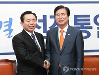 김문수 경기도 지사가 30일 "황우여 대표에 ‘새누리당이 과반 의석이다. 대표로 있는 동안 북한 인권법을 통과시키지 못하면 죽어서 천당에 못갈 것’이라고 얘기하니까 황 대표가 ‘알겠다. 같은 생각이다’라고 했다"고 밝혔다.