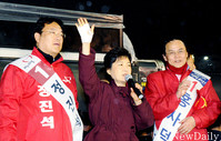 새누리당 박근혜 중앙선대위원장은 10일 “지금 전국이 노원구민 선택에 많은 관심을 갖고 있다. 노원의 자존심을 지켜달라”고 외쳤다. 여성비하‧노인폄하 발언으로 사퇴 압박을 받아온 민주통합당 김용민(노원갑) 후보를 겨냥한 발언이었다. 박 위원장은 김 후보의 막말 파문을