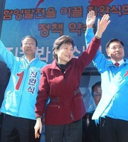 한나라 취약지역 경남 함양 재보선지원 나간 박근혜