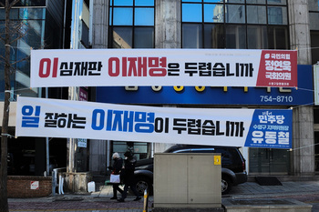 與 정연욱, 부산 수영구에 '이재명은 두렵습니까' 현수막 게시