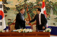 이명박 대통령과 라스 라스무슨 덴마크 총리는 11일 청와대에서 정상회담을 갖고 양국간 교역ㆍ투자 증진, 녹색성장, 개발협력 등 분야에서의 협력을 강화키로 합의했다. 특히 양 정상은 신재생에너지, 녹색성장 분야 협력을 확대하는데 뜻을 모았다.정상회담 이후 가진 기자회견에
