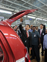 인도를 국빈방문 중인 이명박 대통령은 25일(현지시각) "기업 협력관계에 있어서 보다 적극적으로 해야 되는 시장이 아닌가 생각한다"고 강조했다. 이날 뉴델리 숙소 호텔에서 가진 수행경제인 조찬 간담회에서 이 대통령은 "인도 정부가 한국에 대한 아주 좋은 생각을 갖고 있