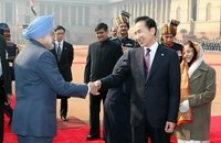 인도를 국빈방문중인 이명박 대통령은 25일(현지시각) 만모한 싱 인도 총리와 정상회담을 갖고 양국 관계를 '장기적 협력 동반자 관계'에서 '전략적 동반자 관계'로 격상하는데 합의했다. 양 정상은 이날 오후 뉴델리 시내 총리실(하이데라바드 하우스)에서 열린 정상회담에서